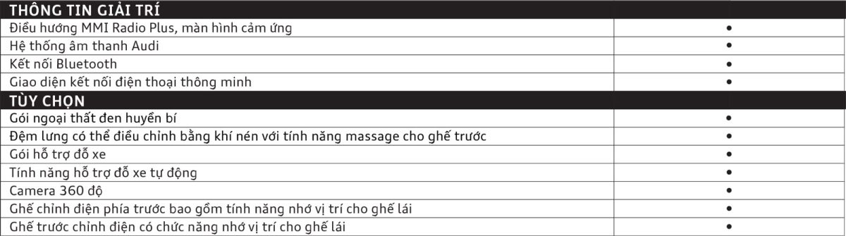 Thiết kế trau chuốt, không gian nội thất rộng hơn trong dáng vẻ thể thao cùng màn hình cảm ứng, Audi A4 dẫn đầu công nghệ. Quán quân giải thưởng “International Engine” hạng mục động cơ TFSI 2.0 với trang bị hệ thống mild hybrid (MHEV). Sự kết hợp tính hiệu quả với độ thoải mái trên cả hai phiên bản dẫn động cầu trước và dẫn động hai cầu. Công suất và mô-men xoắn hiệu quả khiến Audi A4 trở nên khác biệt hoàn toàn trong cùng phân khúc. Dáng vẻ thể thao song hành cùng động cơ xăng mild hybrid, Audi A4 mới mang lại cảm giác lái thú vị với cả hai phiên bản: dẫn động cầu trước và quattro.
