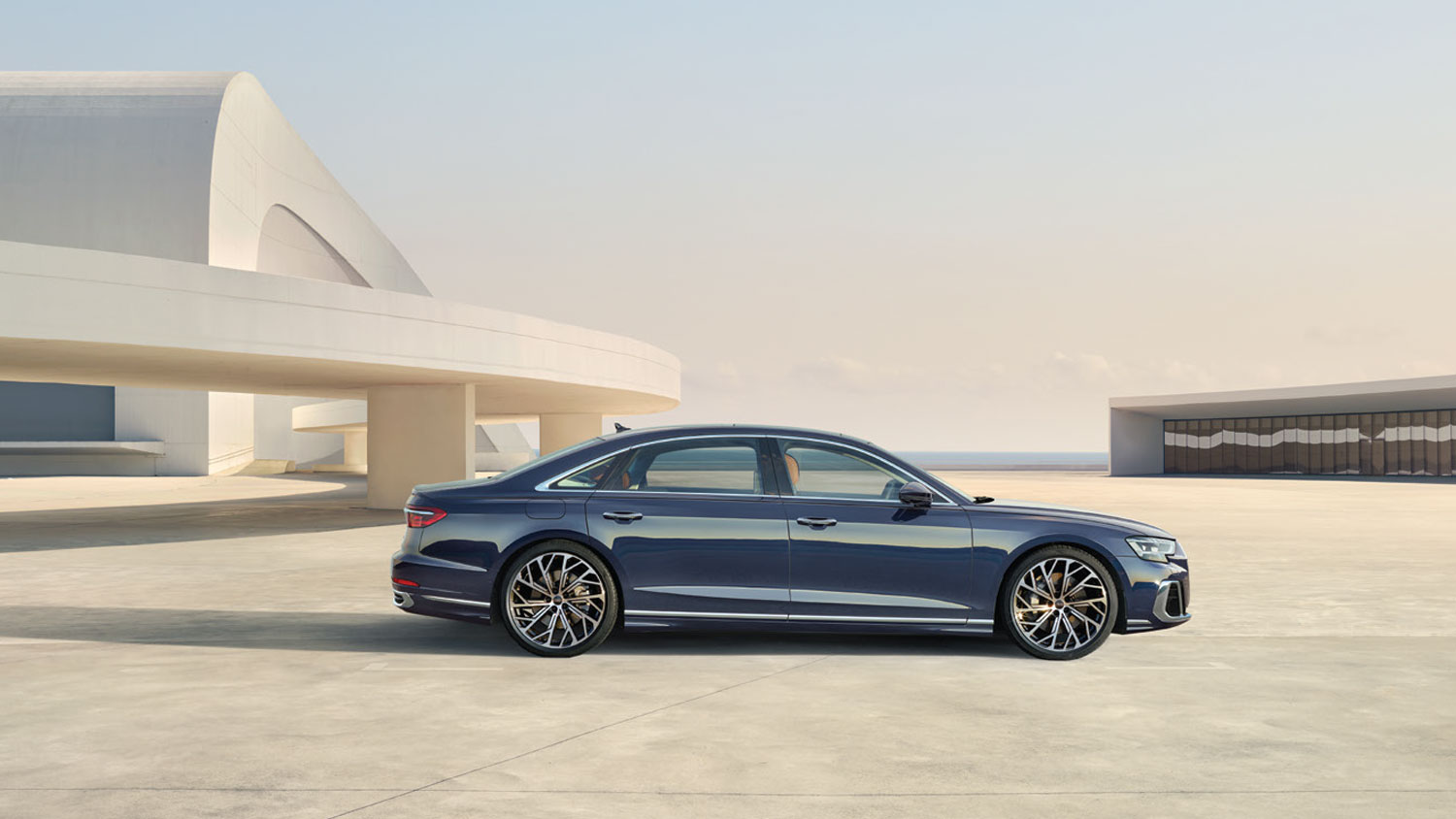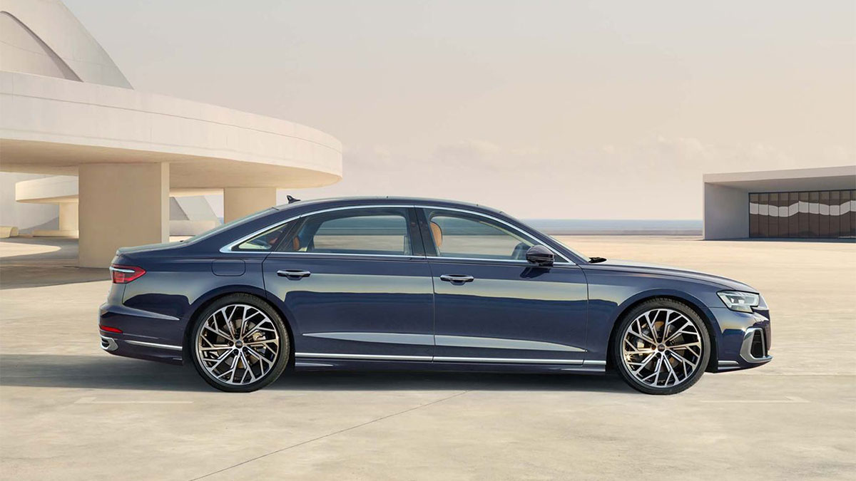 Audi A8 L mới trong màu xanh firmament ánh kim thể hiện một môi trường không gian rộng rãi hơn, đặc biệt với khoảng không trên đầu và chỗ để chân. Chiều dài 5,32 mét, Audi A8 L có trục cơ sở dài hơn cùng thiết kế cửa lớn hơn mang đến một đẳng cấp riêng.