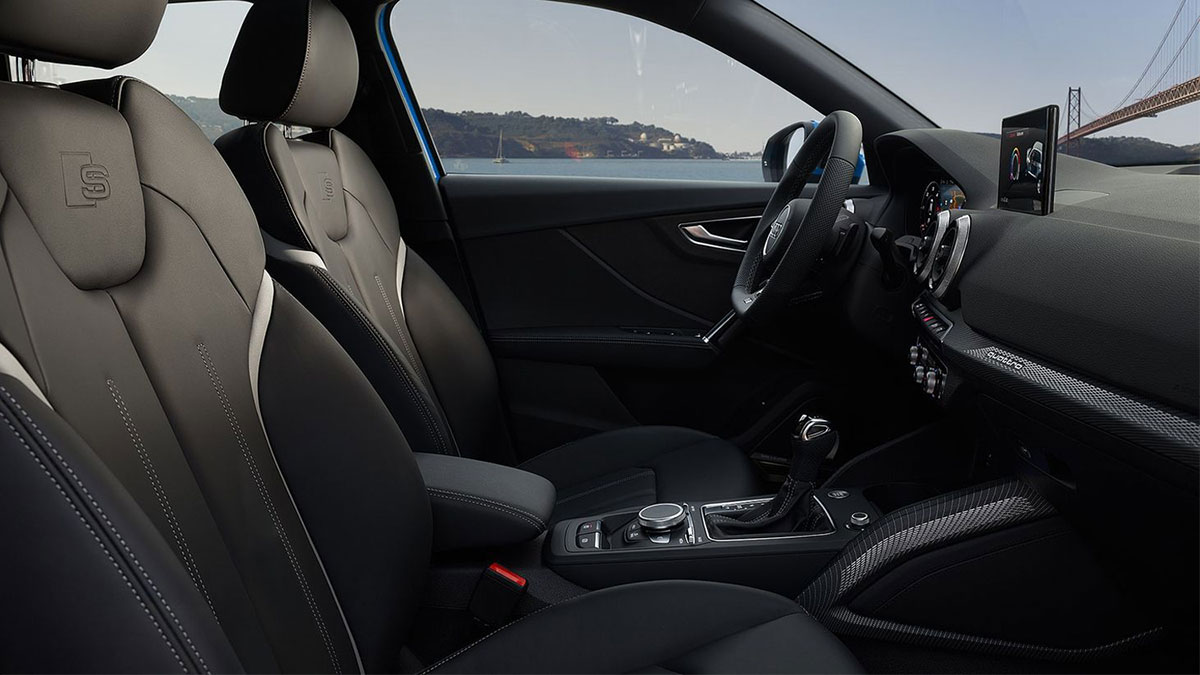 Gói ánh sáng xung quanh như một tùy chọn cho phép bạn tùy chỉnh màu sắc trong nội thất Audi Q2 mới theo sở thích của mình. Công nghệ đèn LED với tính năng chống chói tạo ra ánh sáng đặc biệt hài hòa và tao nhã. Nội thất tùy chọn trên phiên bản S-line với ghế thể thao bọc da Nappa màu đen cao cấp, nội thất xe ấn tượng tập trung tính thể thao.