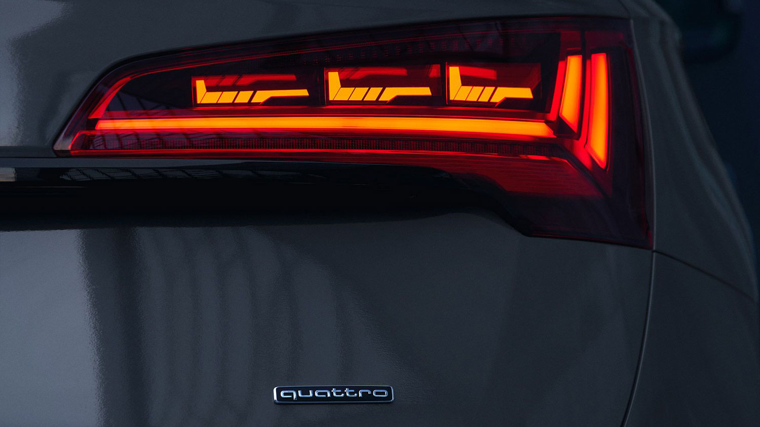 Audi Q5 được trang bị đèn pha LED ma trận, kết hợp đèn LED phía trước và phía sau cùng đèn báo rẽ năng động, hệ thống rửa đèn, khi xe vào cua đèn pha sẽ tự động điều chỉnh phạm vi của ánh sáng một cách thông minh, và đèn chiếu sáng ban ngày nổi bật.