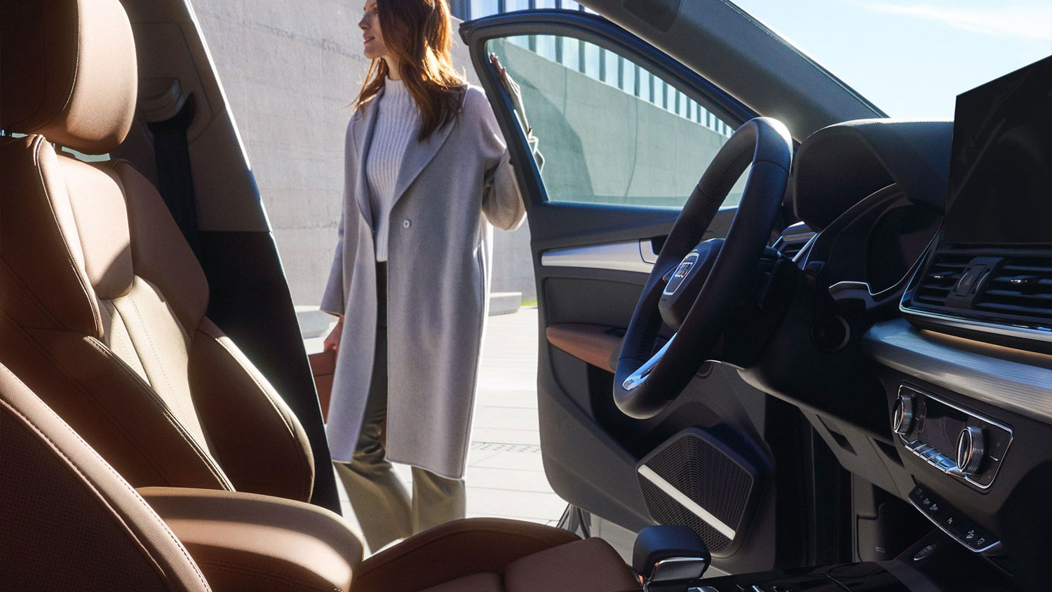 Chiều dài cơ sở rộng 2,82 m biến khoang nội thất trở thành một khái niệm không gian rộng rãi cho năm người bao gồm khoảng trần xe cũng như nơi để chân. Đường nhấn ngang trong thiết kế nội thất mang đến cảm giác ấn tượng về chiều rộng và sự thoải mái. Một dải ốp trang trí tinh xảo chạy dọc theo chiều rộng của bảng điều khiển tạo nên ấn tượng tổng thể về sự sang trọng. Trong bóng tối, ánh sáng nội thất đa sắc xung quanh là điểm nhấn hấp dẫn cho phiên bản Audi Q5 S-line. Ghế lái có chức năng ghi nhớ vị trí. Phiên bản S-line được trang bị ghế thể thao phía trước.