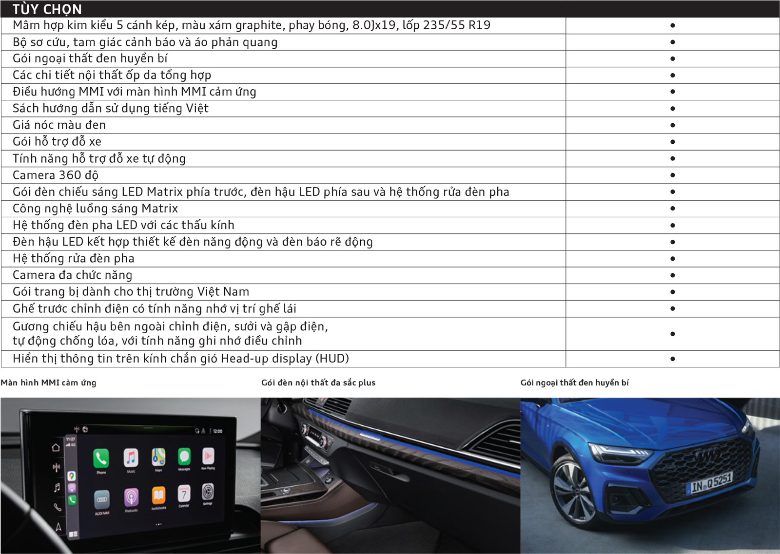 Sức hút khó cưỡng – Audi Q5 với thiết kế thể thao, khả năng vận hành mạnh mẽ và tiện nghi vượt trội. Hệ thống dẫn động quattro huyền thoại dẫn lối cho mọi hành trình. Khám phá phiên bản giới hạn Audi Q5 Black Edition – đẳng cấp khác biệt dành cho những cá tính độc đáo. Liên hệ đặt hàng ngay!